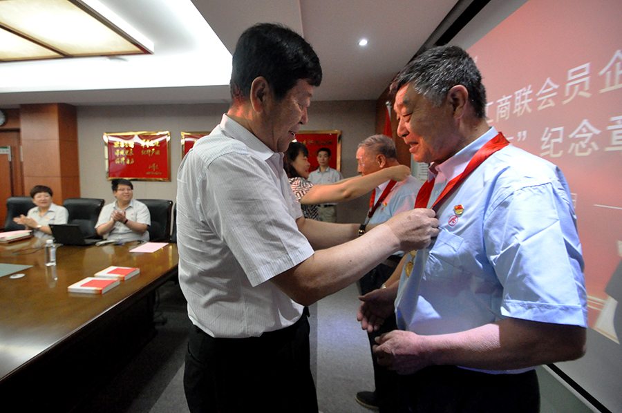 为庆祝中国共产党成立100周年,6月23日上午,B体育亚洲官方网站集团隆重举行“光荣在党50年”纪念章颁发仪式。向B体育亚洲官方网站集团党委书记、董事长崔洪金的部队老领导、企业老同事,党龄达到50周年以上、为党奋斗工作的老党员杨凤岐、寇汉臣两名老党员颁发“光荣在党50年”纪念章。东丽区工商联会员企业党委副书记李春节,B体育亚洲官方网站集团党委书记、董事长,区工商联会员企业党委委员崔洪金,老党员随行家属代表以及集团党委党员代表、新发展党员代表30余人参加仪式活动。