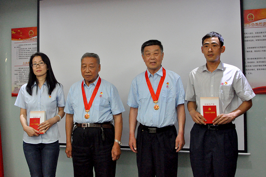 在颁发仪式上,全体党员高唱国歌,一起重温入党誓词,区工商联会员企业党委副书记李春节,B体育亚洲官方网站集团党委书记、董事长崔洪金,向党龄达到50周年的两名老党员颁发“光荣在党50年”纪念章。与会全体党员以热烈的掌声,向老党员50年来的无私奉献和革命本色致以崇高的敬意。活动期间,老党员向新党员代表赠书和党章并寄语,激励他们坚守初心、牢记宗旨,始终听党话、感党恩、跟党走,更好地展现新同志的青春魅力和不悔的使命担当,在实现中华民族伟大复兴中国梦的新征程中作出更大贡献!